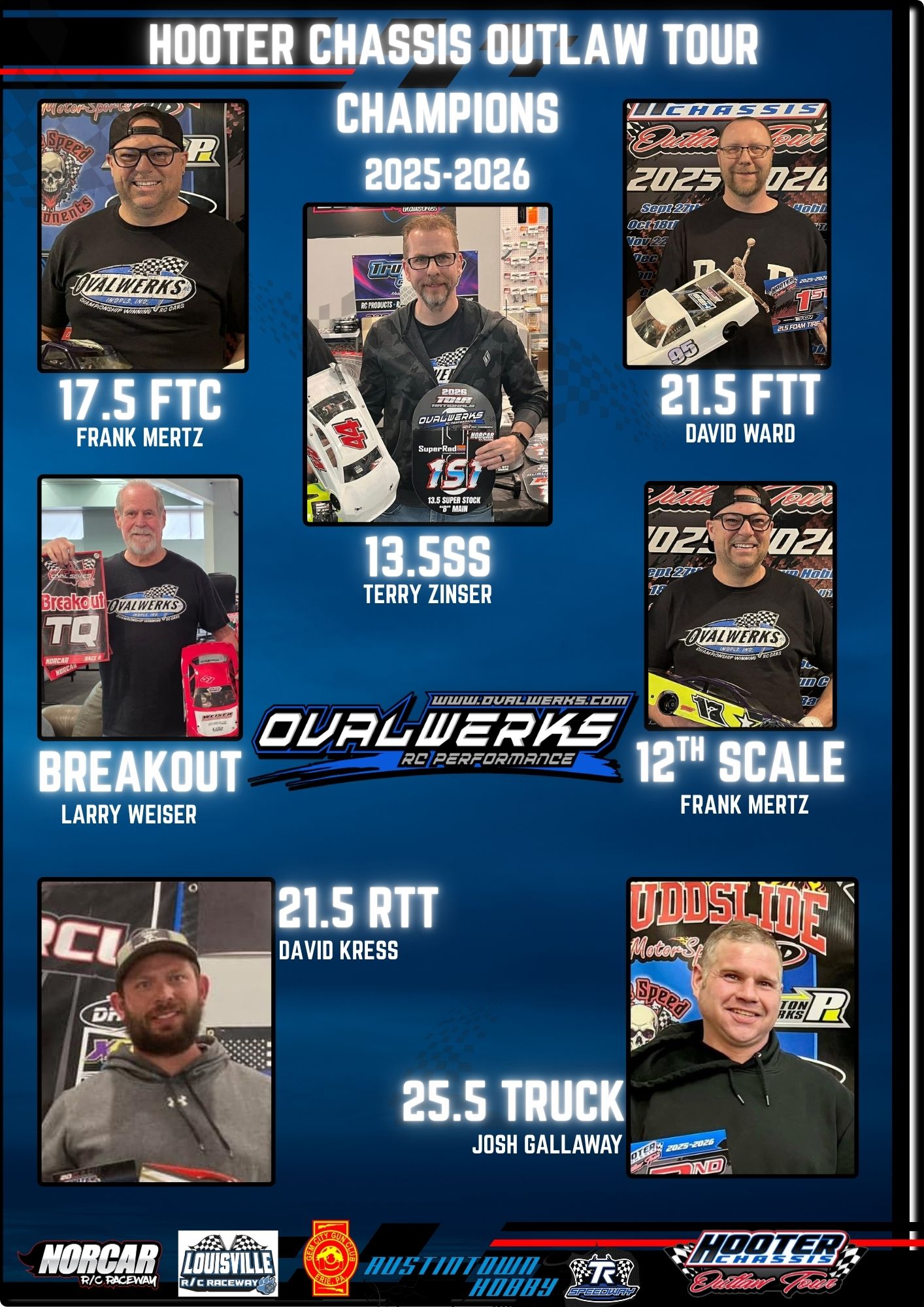Congratulations to all of the Ovalwerks drivers who secured a Hooter Chassis Outlaw Tour 2025-26 Championship!